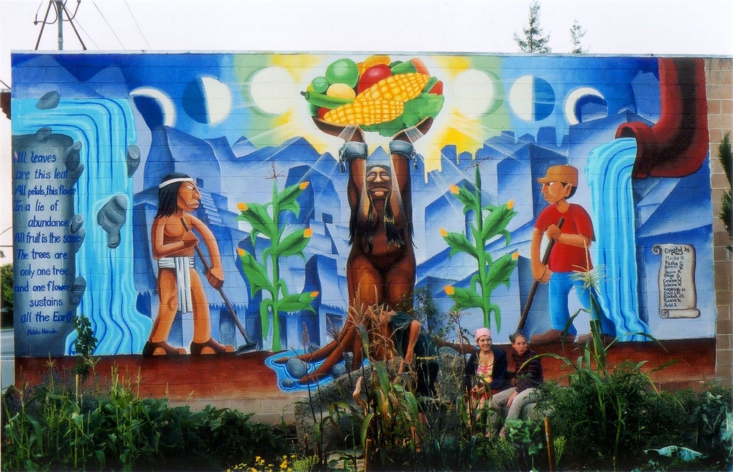 Ariel Shepard was an Oakland-based street artist who was hired by the Schools Group to collaborate on a large-format mural at the Mountain View Organic Garden.